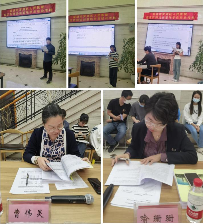 本次考核由罗湖区人民医院曹伟灵副院长担任考核专家组组长,邀请了南方医科大学珠江医院药学部喻珊珊主任药师担任院外考核专家,我院刘江副主任药师、呼吸内科黄勤淼副主任医师担任院内考核专家。我院临床药师和所有培训学员参加和观摩本次考核。
