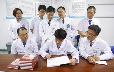 合影留恋后梁廷波教授与李海军主任在普外科会议室进行了简短的授书仪式。梁廷波教授将团队的最新著作《学科联合诊治肝胆胰外科疑难病例精选》签名并赠于普外科医生团队。