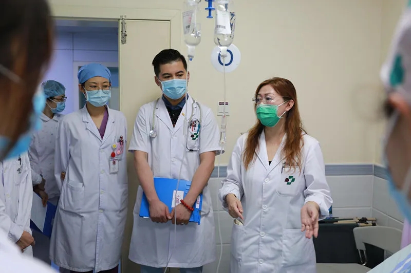 赵跃宏博士接到科室医生汇报后马上到床边会诊,用专业知识详尽分析病情,安抚他们失控的情绪……