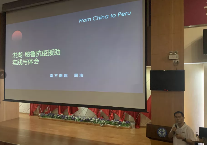 比赛结束后,南方医科大学南方医院周浩主任为我们带来他的抗疫经历——“洪湖-秘鲁抗疫援助实践与体会” ,从国内抗疫经历再到国外抗疫经历。不仅为我们展示在国内一线抗疫工作的艰难,并且介绍国外抗疫工作实践与体会。
