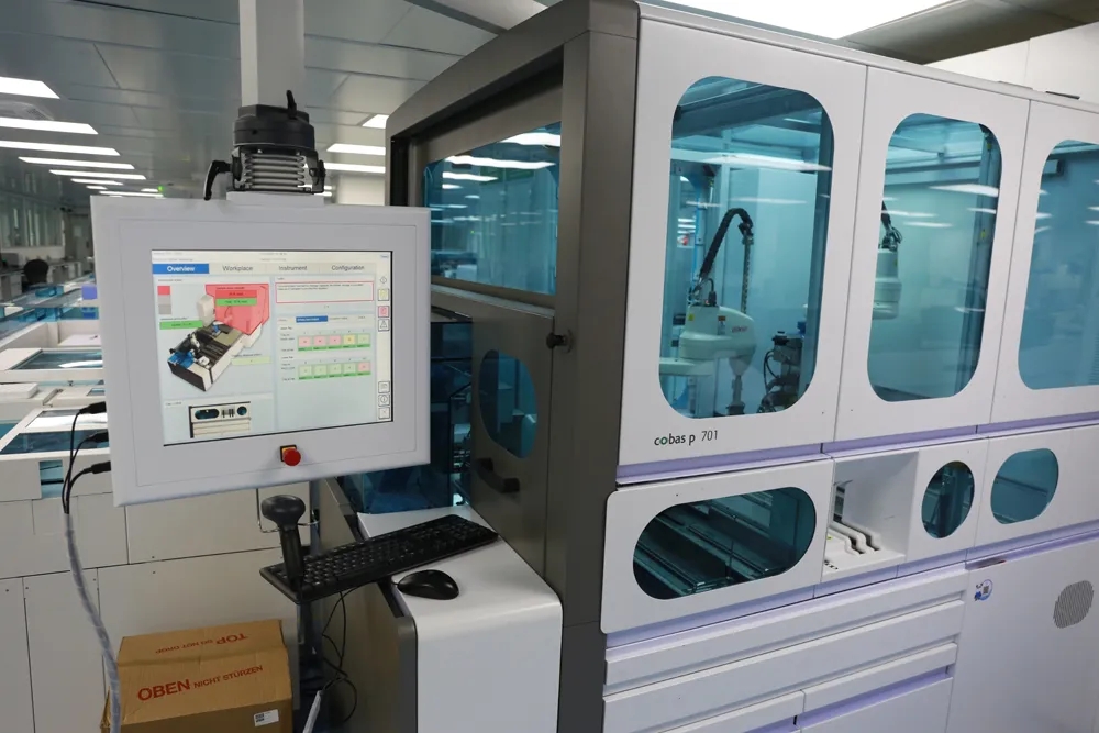 今年,医学检验中心引入首次亮相中国的cobas® 6800全自动分子诊断系统、以及cobas®t 711全自动凝血分析仪,实现了生化、免疫、分子、凝血检验的全面高度整合,结合罗氏诊断创新推出的MyLab+未来实验室解决方案,建成亚太国际区域检验中心整合实验室。这将把实验室的自动化水平和效率带到前所未有的高度,使其每天能处理大批量的样本。