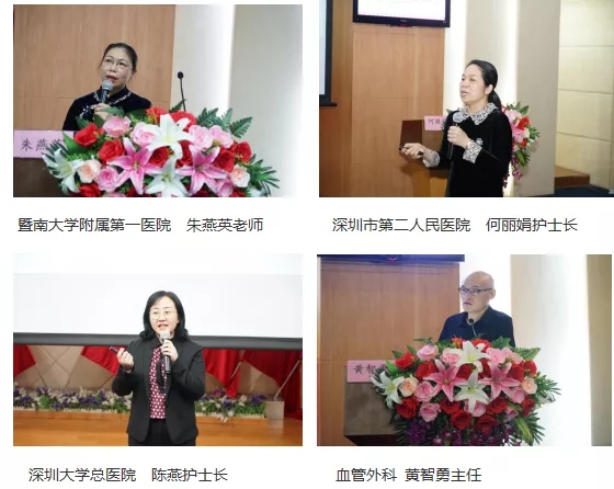 来自暨南大学附属第一医院的延续护理服务部的朱燕英老师介绍了该院作为广东省最早开展延续服务的经验和开展互联网+伤口护理的个案分享;深圳市第二人民医院的资深造口治疗师何丽娟护士长介绍了动静脉溃疡的处理;深圳大学总医院普外科国际淋巴水肿治疗师陈燕护士长介绍了淋巴水肿的处理;血管外科的黄智勇主任介绍了动静脉溃疡的鉴别和诊治;我院客服中心李靖丽主任介绍了“互联网+”服务的罗湖模式;护理部黄莉莎副主任介绍了伤口的科研设计;伤口造口专科小组组长、普外科护士长林粤祺分享了伤口造口专科的互联网+伤口护理;专科护士王永娜介绍了伤口个案。