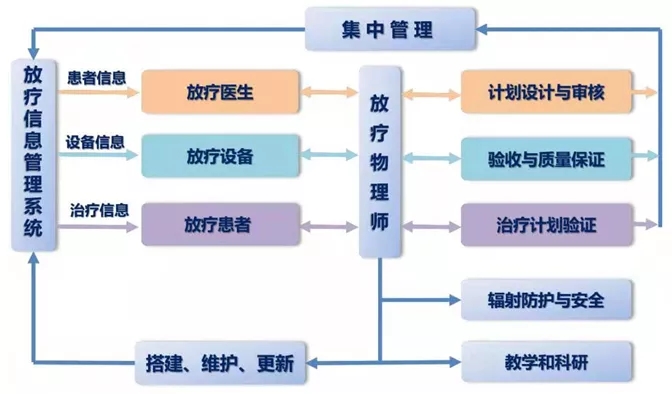 放疗物理师通过整合、重建放疗科的网络资源,搭建放疗信息管理系统,统一管理放射治疗工作流程所涉及的各种硬件设备、软件系统及网络连接,实现患者病历数据的结构和电子化储存与管理、放疗流程优化与质控管理、综合分析,提高医护人员工作效率和工作质量,为临床、管理和科研提供全面的数据支持和分析。逐步实现与HIS系统、收费系统等其他临床科室系统的深度集成,满足放疗与其他科室信息系统的共享。