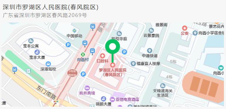 春风口腔:罗湖医院春风院区门诊1楼(深圳市罗湖区春风路2069号)