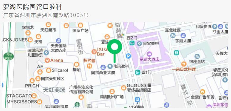 国贸口腔:国贸商业大厦三楼口腔科(深圳市罗湖区南湖路3005号)