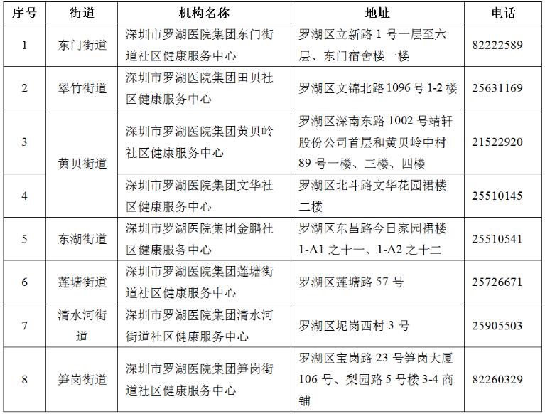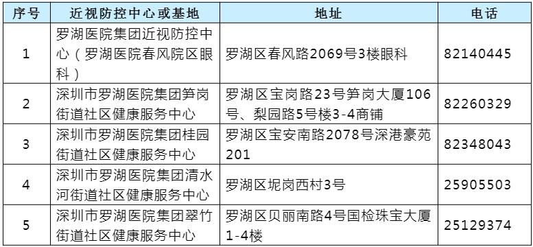 (1)罗湖医院集团罗湖区人民医院春风院区眼科视力门诊、桂园街道社区健康服务中心、笋岗街道社区健康服务中心、清水河街道社区健康服务中心和翠竹街道社区健康服务中心0元诊金