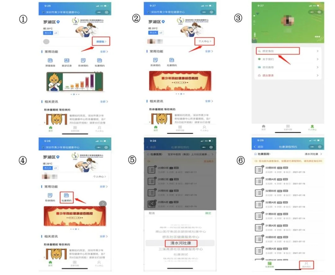 (1)第一步:微信搜索进入【深圳市青少年脊柱健康中心小程序】