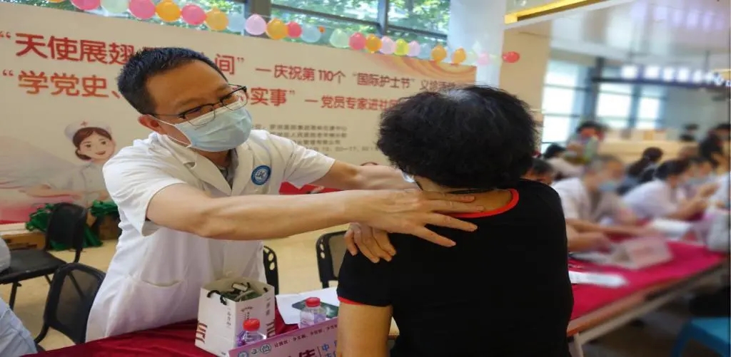 在开展 " 心愿祝福 " 活动的同时,罗湖区人民医院老年病院、综合二、药学等党支部和罗湖医院集团社管中心翠岭党支部的 20 余名专家、医护人员给居民提供义诊服务,包括新冠疫苗接种咨询、健康咨询、健康宣教、测量血压血糖、签约家庭医生和免费体验推拿等中医适宜技术服务。