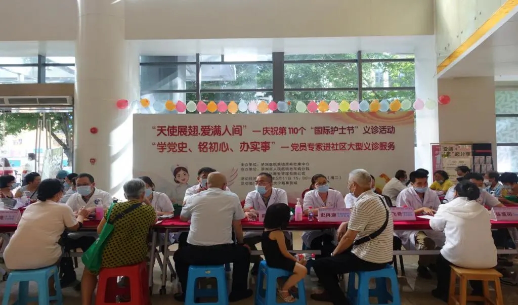 5 月 11 日下午,罗湖区人民医院老年病院党支部和罗湖医院集团社管中心翠岭党支部组织开展了党史学习教育,党员们认真聆听九旬、八旬、七旬老党员的入党故事,同时将学习成效转化为工作动力,在喜荟城大力开展 " 党员专家进社区 " 义诊服务的同时举办了 " 心愿祝福表心意 " 活动,携手群众一起为党送祝福,把党史学习教育融入到群众、融入到为民服务中,带动群众一起感受党的力量和温暖。