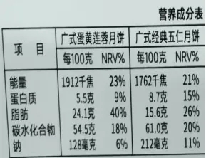 大家挑选时要根据自己健康状况选择能量、脂肪、糖、钠含量合适的月饼。